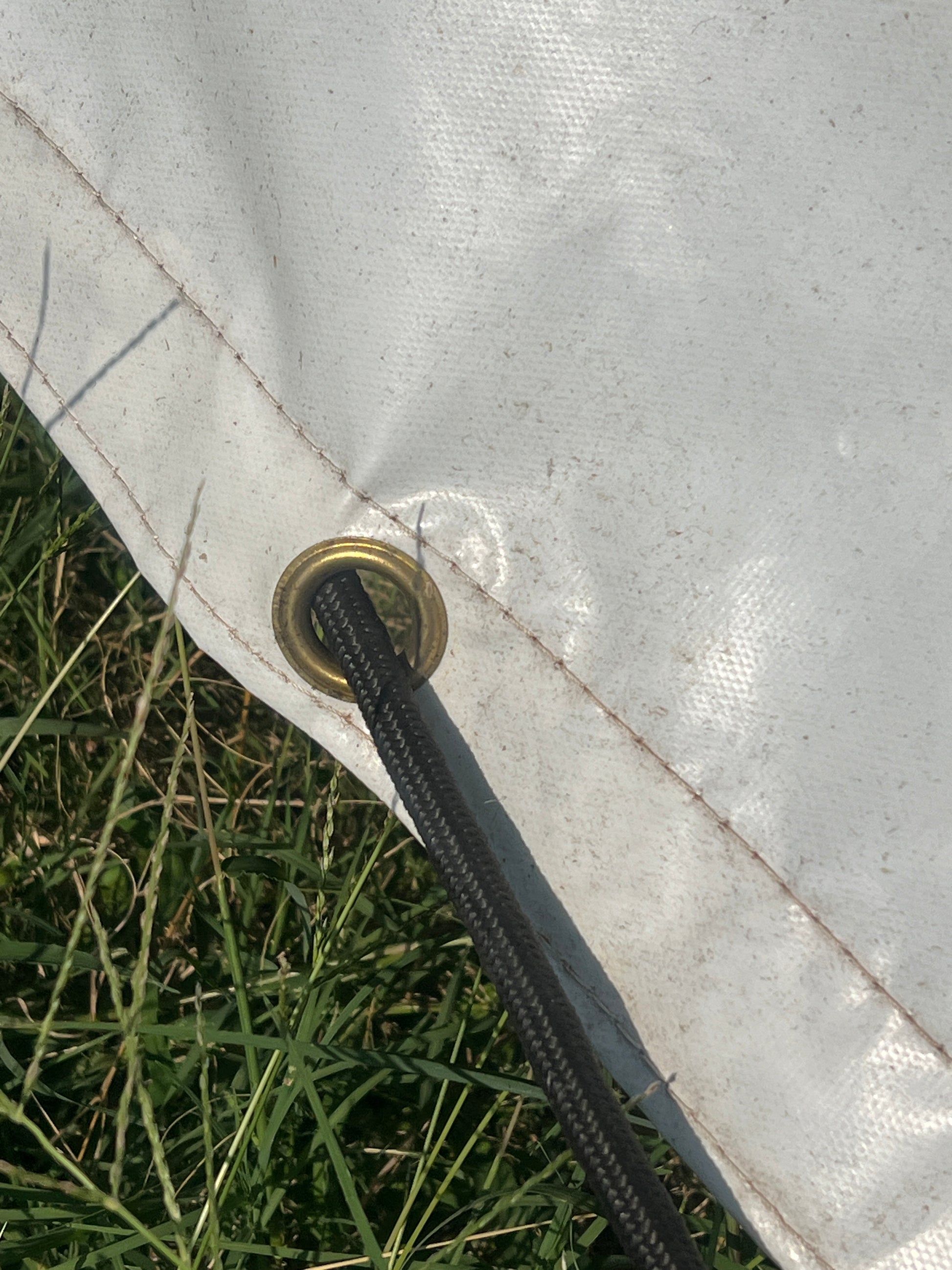 ✓Heavy-duty (over 14oz weight) white polytherurane tarp, that is waterproof, mold and mildew resistant, sunlight/UV proof, and heat reflective.